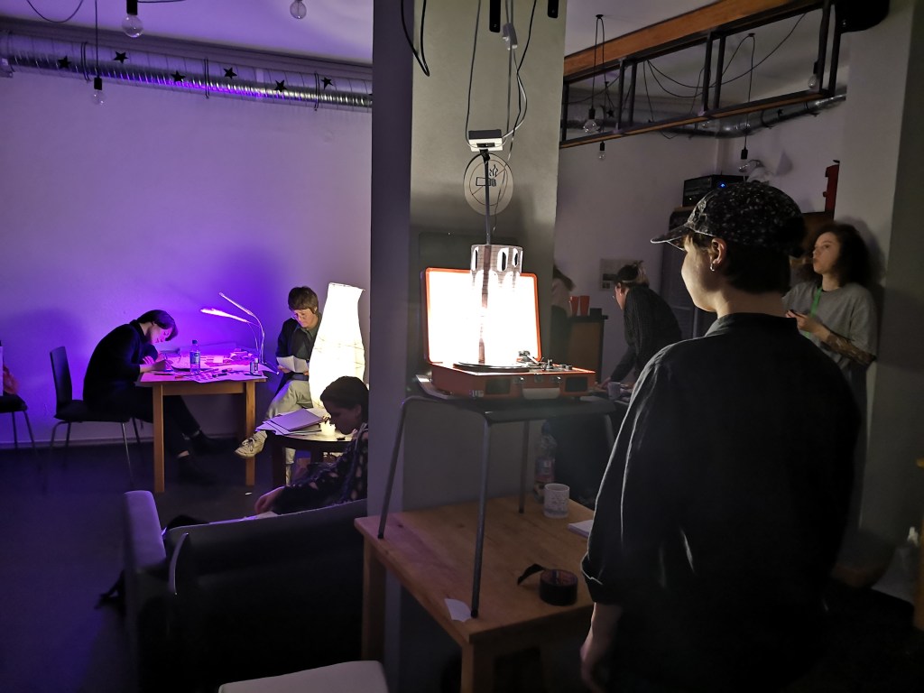 The workshop was in the framework of “Өмә” exhibition at Kunstraum Kreuzberg Bethanien, that examined Russian colonialism and anticolonial resistance. Most of the participants shared their experiences of living in Ukraine, Belarus, Armenia and Russia. Poetry pieces, drawings, and paper have been produced during the workshop, and are included into the archive.
