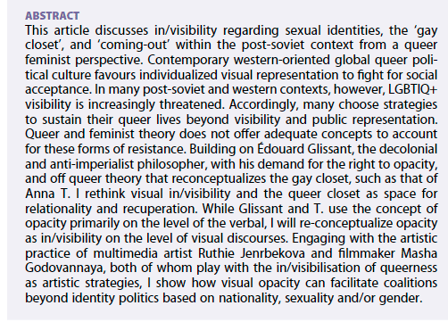 In/Visibility and the (post-soviet) ‘queer closet’