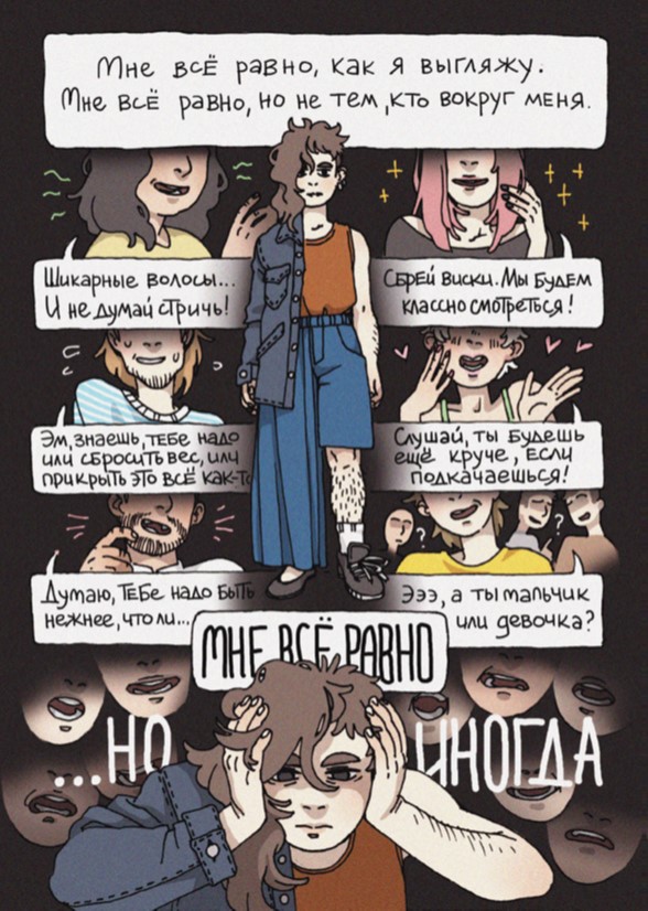 “I am Lada, I was born in the Far East and have been living here all my life. I am bisexual. I realized it when I was 12, I accepted it when I was 25. I am over 30 now, I have always kept my sexuality a secret, and most likely I will continue to do so. This is my conscious choice that is often criticized in the LGBT community, especially in LGBT and feminist activist circles. This text is an attempt to explain why this happened to me and people around me and why relative invisibility is our main strategy for being safe.”